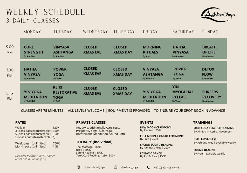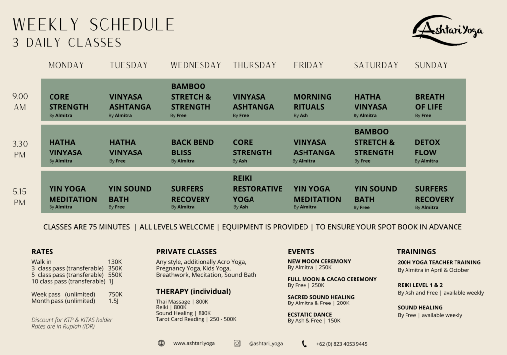 At Ashtari Yoga, we are dedicated to preserving Lombok’s natural beauty through eco-friendly practices. From sourcing local, organic ingredients for our restaurant to minimizing waste and promoting community-based initiatives, we strive to create a positive impact on the environment and the local community. Together, we can nurture both inner and outer harmony.