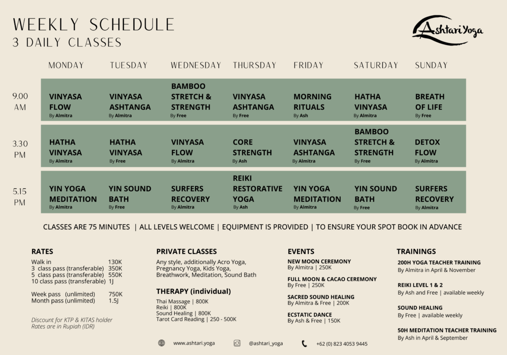 Ashtari Yoga Schedule, Kuta. Lombok